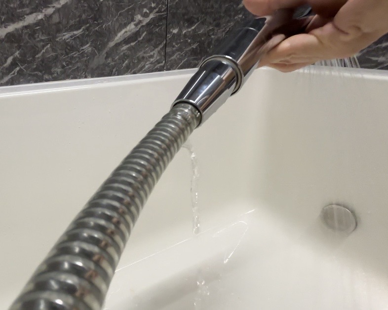 すると…シャワーホースから豪快に水漏れを確認してしまいました💦